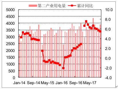 不過,值得一提的是雖然第二產(chǎn)業(yè)用電量比重不斷下滑,但第二產(chǎn)業(yè)仍是今年電力需求增長(zhǎng)的主要?jiǎng)恿?,受宏觀經(jīng)濟(jì)好轉(zhuǎn)的影響,第二產(chǎn)業(yè)用電量持續(xù)增長(zhǎng),前 11 個(gè)月達(dá)到 4.02 萬億千瓦時(shí),同比增長(zhǎng) 5.5%,增長(zhǎng)水平較 16 年同期上升 2.88 個(gè)百分點(diǎn),是除第一產(chǎn)業(yè)以外,僅有增速加快的產(chǎn)業(yè)。