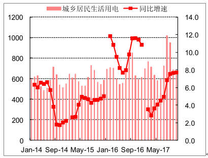 14-17 年城鄉(xiāng)居民用電量(單位:億千瓦時(shí),% )