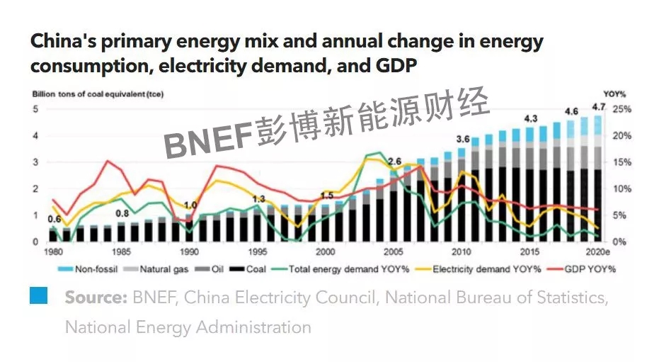 2017年,中國的電力需求增長7.7%,是2013年以來的最大增幅。彭博新能源財經預測,未來幾年內,中國的電力需求將繼續(xù)增長,但增速將會放緩。貨幣政策收緊,固定資產投資放緩,對鐵、鋼和鋁等行業(yè)的生產控制,及美國關稅新政帶來的潛在負面影響均抑制了電力需求的增長。