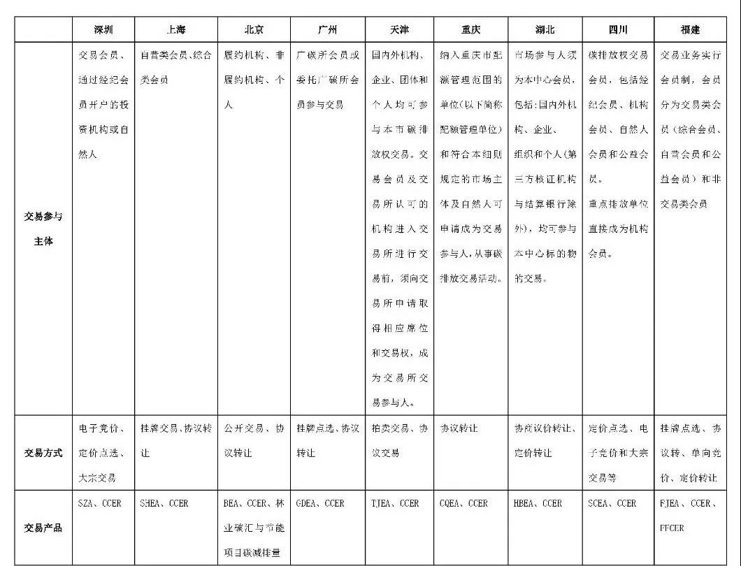 2、 交易產(chǎn)品:目前碳交易市場仍處于發(fā)展初期,故各機構的碳交易產(chǎn)品主要以現(xiàn)貨交易為主,僅限于碳排放配額和核證自愿減排量(CCER),以及在此基礎上發(fā)展的碳金融工具。