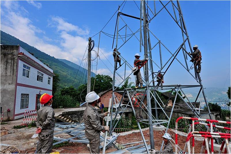【背景】 在巴東縣信陵鎮(zhèn)西壤坡社區(qū),巴東供電員工頂著高溫組立35千伏西官線(西壤坡變電站至官渡口變電站)7+1號鐵塔?! ∈艿刭|