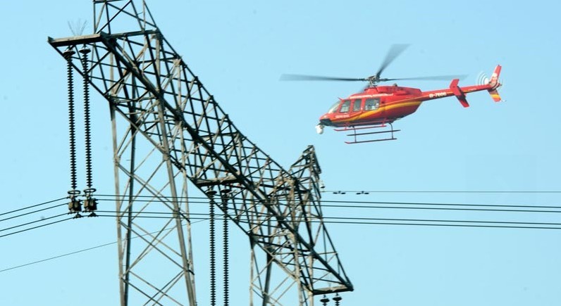 直升機航巡消缺 確?!皟晒?jié)”期間骨干電網(wǎng)安全運行