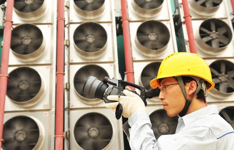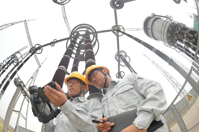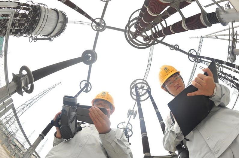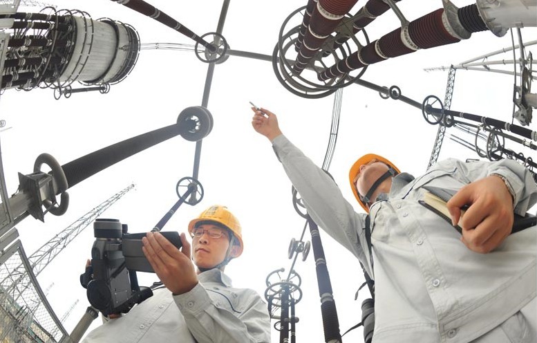 據(jù)統(tǒng)計(jì),今年1月至8月份四川錦屏水電站——蘇州的±800千伏特高壓輸電網(wǎng)累計(jì)輸送電量超過(guò)128億千瓦時(shí),最大輸送負(fù)荷達(dá)483萬(wàn)千瓦,占江蘇全部區(qū)外來(lái)電負(fù)荷的三分之一以上。遠(yuǎn)方清潔水電輸入江蘇,成為當(dāng)?shù)赜行?zhàn)勝持續(xù)高溫天氣的功勛電能。今夏持續(xù)高溫,江蘇電網(wǎng)用電負(fù)荷屢創(chuàng)新高,江蘇最大用電負(fù)荷達(dá)到8141萬(wàn)千瓦,比2012年增長(zhǎng)12.6%。江蘇因此成為繼廣東省之后第二個(gè)最大用電負(fù)荷超8000萬(wàn)千瓦的省份。圖為8月29日,運(yùn)行人員正在±800千伏特高壓蘇州換流站內(nèi)巡視設(shè)備。