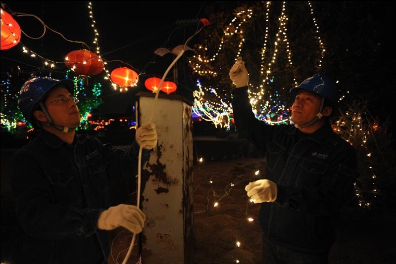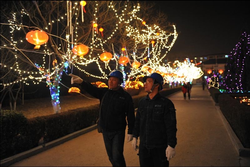 為確保全市人民度過一個光明溫馨,美麗壯觀的蛇年燈節(jié),河南登封市電業(yè)局在做好安全供電的同時,還組織120名人員對15個燈展集中區(qū)域進行臨時用電安全指導和隱患排查。圖為2月20日,該局員工在嵩陽書院對臨時用