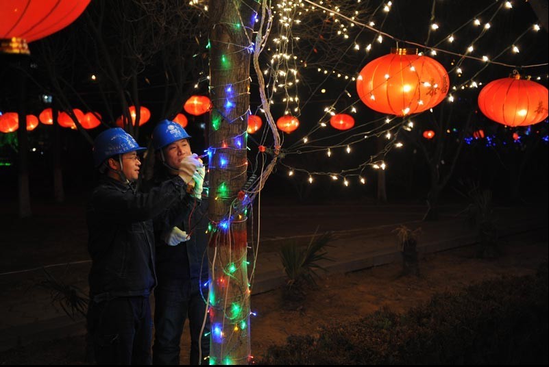 為確保全市人民度過一個光明溫馨,美麗壯觀的蛇年燈節(jié),河南登封市電業(yè)局在做好安全供電的同時,還組織120名人員對15個燈展集中區(qū)域進行臨時用電安全指導和隱患排查。圖為2月20日,該局員工在嵩陽書院對臨時用電線路進行規(guī)范。