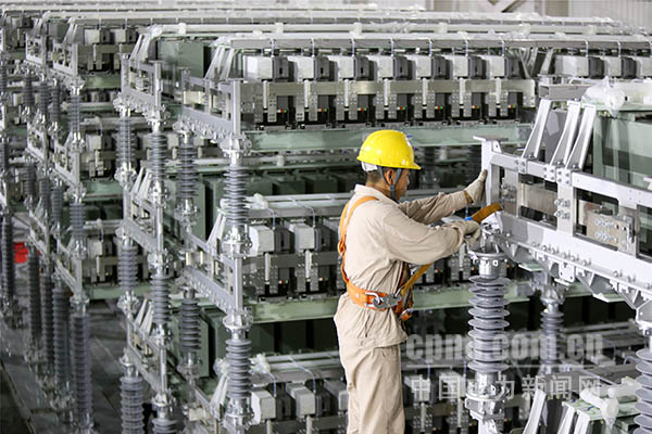 中電新聞網(wǎng)訊 通訊員 湯德宏 報道 7月31日,電力作業(yè)人員正在蘇州南部電網(wǎng)500千伏統(tǒng)一潮流控制器(UPFC) 示范工程閥廳內(nèi)進行換流閥安裝。 當日,位于江蘇蘇州的500千伏“統(tǒng)一潮流控制器”示范工程加緊施工,目前,該工程全面進入電氣設備安裝調(diào)試高峰。