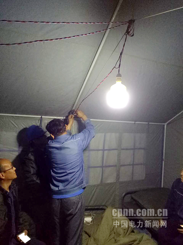 18時(shí)20分,應(yīng)急保電車到達(dá)哈什哈蘇木抗震指揮部進(jìn)行保電,該局工作人員在震區(qū)開展電源切轉(zhuǎn)準(zhǔn)備工作,鋪放電纜、安裝開關(guān)等工作都在有條不紊的開展。19時(shí)20分,隨著應(yīng)急發(fā)電車最后一根電纜成功接入,發(fā)電車啟動(dòng)送電,電源成功切轉(zhuǎn),發(fā)電車的成功接入解決了震區(qū)指揮部、宿舍、廚房的電力供應(yīng)。隨后,該局布置夜間值班保電工作,要求保電人員在現(xiàn)場(chǎng)輪流值守,監(jiān)護(hù)現(xiàn)場(chǎng)供電情況。該局工作人員在得知盟委指揮部臨時(shí)搭建的帳篷還沒有通上電后,立即組織營(yíng)業(yè)所人員購(gòu)買所需的電線、插座、燈頭、節(jié)能燈等照明材料送至指揮部,并組織工作人員安裝接線。21時(shí)20分,臨時(shí)帳篷全部接電成功。