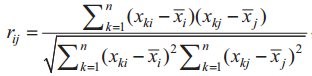 2)計(jì)算初始矩陣的相關(guān)系數(shù)矩陣,其方程如下: