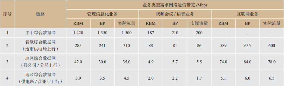 表1 通信網(wǎng)絡(luò)帶寬需求預(yù)測(cè)結(jié)果Tab.1 The prediction results of electric power communication network requirement