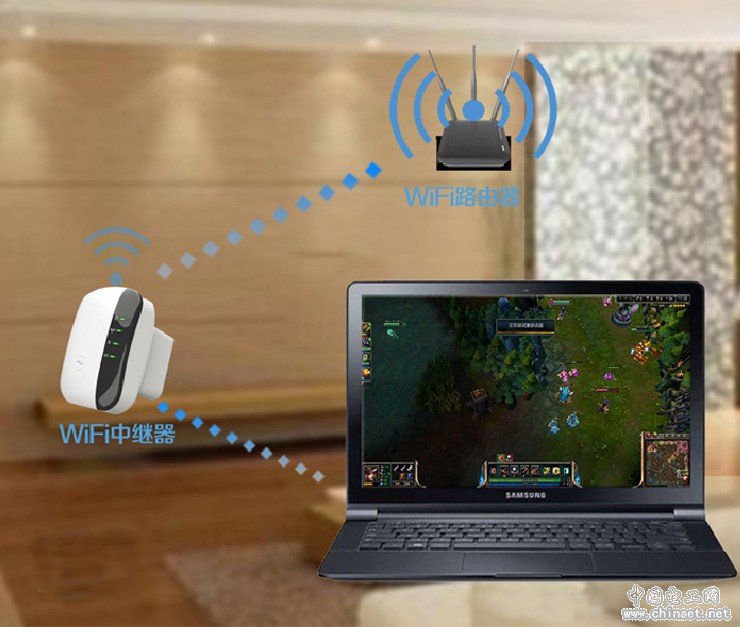 WiFi中繼器放置于無線路由器與WiFi覆蓋信號死角之間,將接收到的微弱WiFi信號放大后再發(fā)射出去,從而增大WiFi信號的覆蓋范圍?,F(xiàn)在也有企業(yè)創(chuàng)新性地將WiFi中繼器的功能集成到燈泡里面,能照明的同時還能增強信號,一舉兩得。