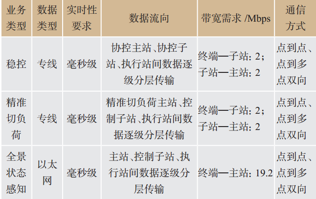 從系統(tǒng)保護(hù)實現(xiàn)功能來看,其業(yè)務(wù)主要包括穩(wěn)控、精準(zhǔn)切負(fù)荷、全景狀態(tài)感知3種類型。其中穩(wěn)控及精準(zhǔn)切負(fù)荷業(yè)務(wù)屬于控制類專線信息,全景狀態(tài)感知屬于采集類信息。