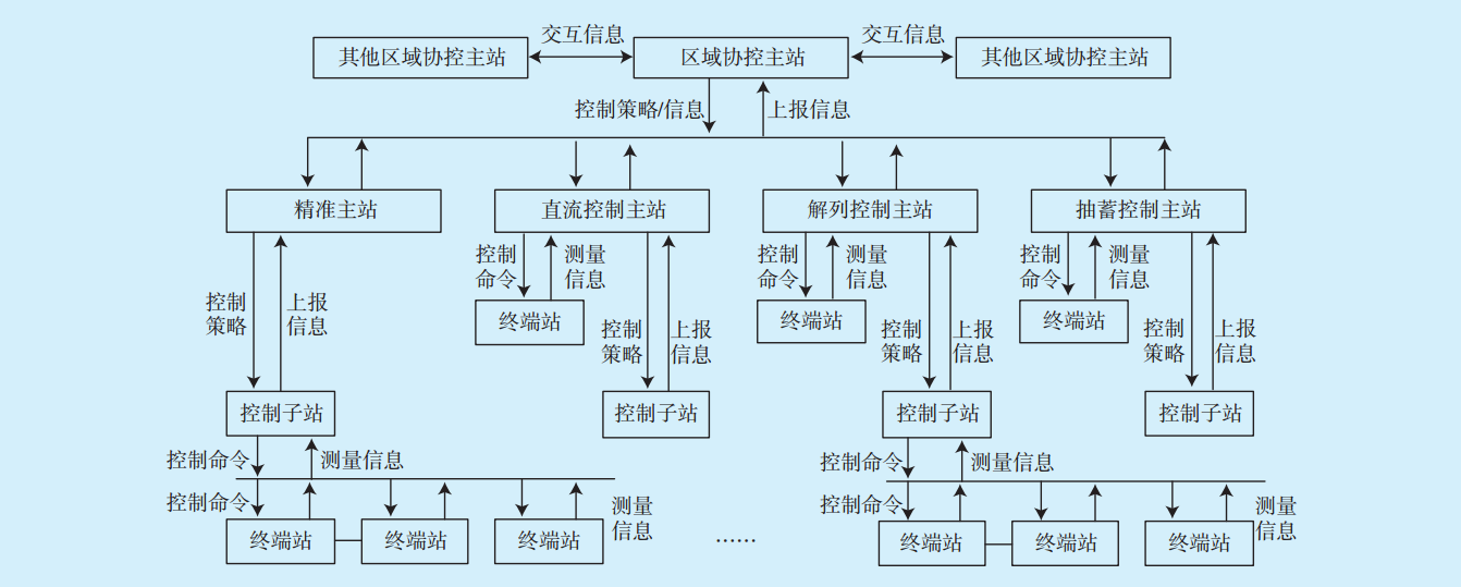 1)區(qū)域協(xié)控主站、控制主站、控制子站和終端間數據逐級分層傳輸,跨層級節(jié)點間無直接數據交互需求;