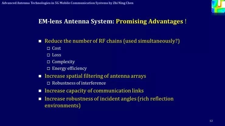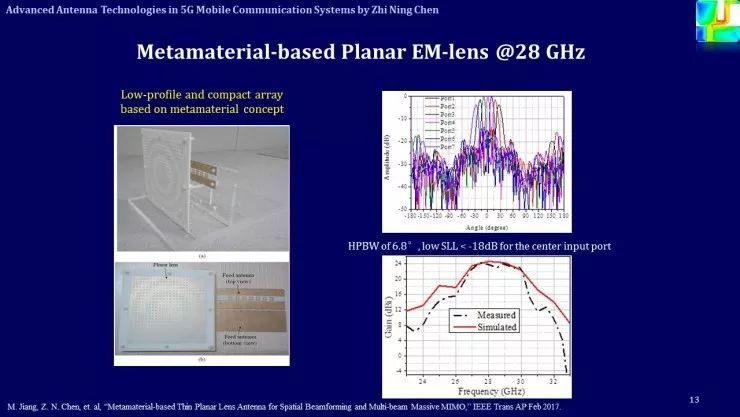 從這張PPT可以看出,用電磁透鏡可以降低成本、降低復(fù)雜度、增加輻射效率,還可以增加天線陣列的濾波特性(屏蔽干擾信號(hào))等等。