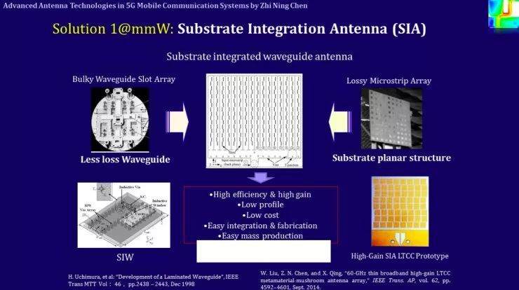 第一個(gè)方案是,襯底集成天線(substrate integrated antenna,即SIA)。