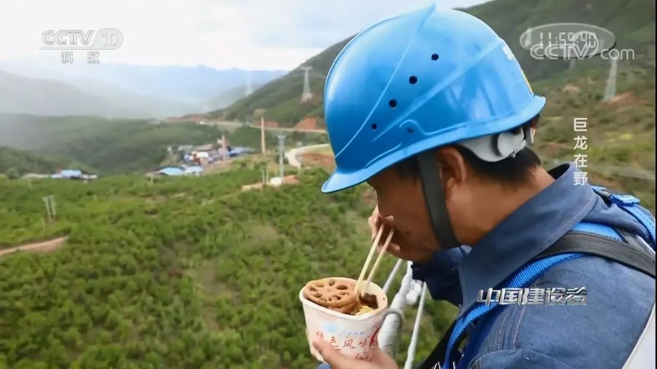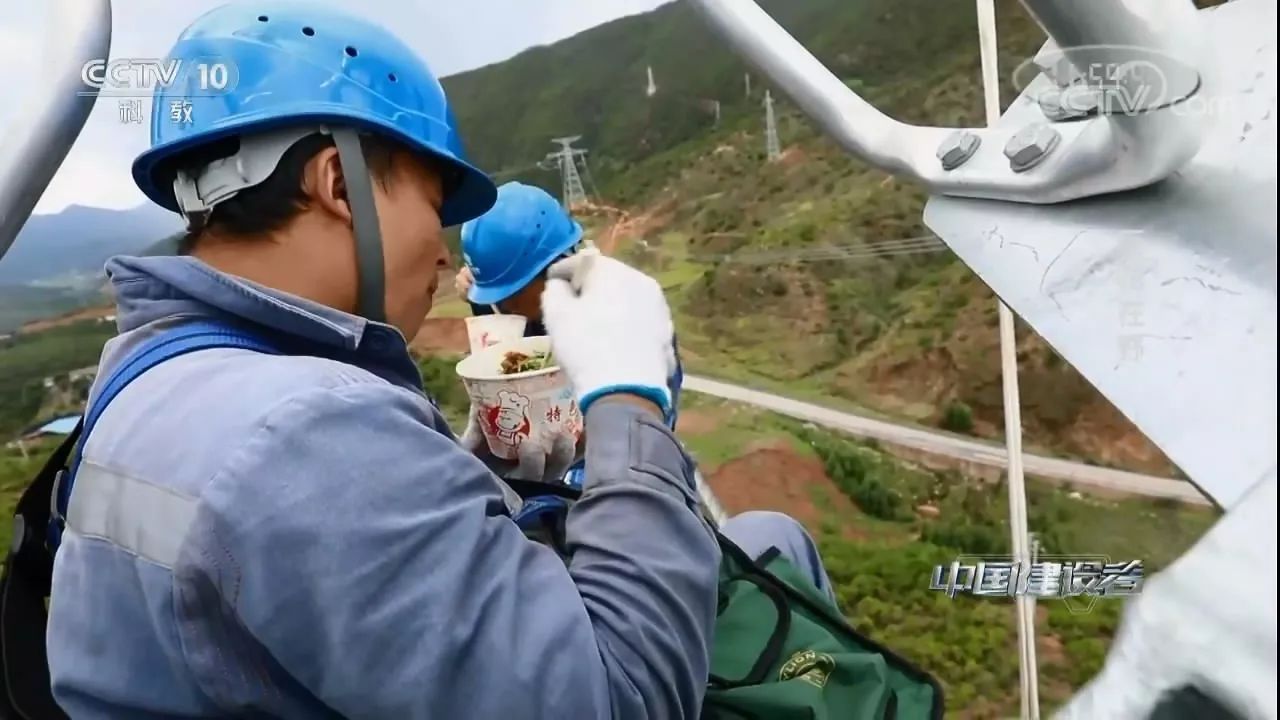 ▲上下塔至少需要一個多小時。為了節(jié)省時間,線路工一般都是早上上塔,傍晚才下來。一起來看看這些“蜘蛛俠”們在高空如何就餐~▼