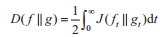 定義2.2 f對(duì)于g的相對(duì)熵D(f||g)定義為: