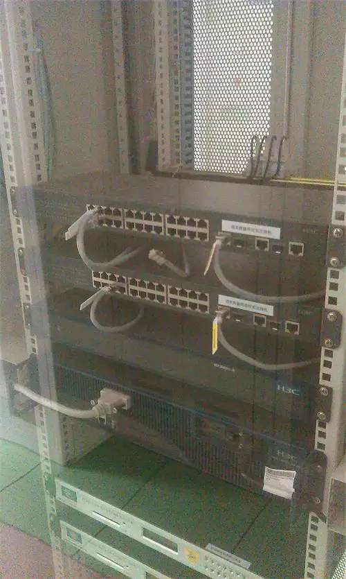 上圖即為站內(nèi)交換機和路由器的示意圖。許多網(wǎng)口的最上面兩臺設(shè)備為交換機,它負(fù)責(zé)將所有用網(wǎng)線接入的業(yè)務(wù)匯聚,再傳送至位于第四層的路由器,路由器通過尾纖連接至ODF,將所有的信號傳送出站。