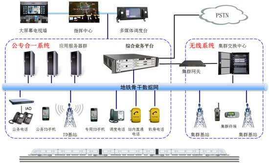 在軌道交通通信系統(tǒng)中,公務電話系統(tǒng)主要用于地鐵內(nèi)部各部門、地鐵用戶與公網(wǎng)用戶之間的電話聯(lián)系,為線路的運營、管理、維修等部門的工作人員提供服務;專用電話系統(tǒng)是調(diào)度員和車站、車輛段值班員指揮列車運行和下達調(diào)度命令的重要通信工具,是為列車運營、電力供應、日常維修、防災救護、票務管理提供指揮手段的專用通信系統(tǒng)。在提供的業(yè)務上,兩者之間沒有任何聯(lián)系,因此在軌道交通通信系統(tǒng)中兩個系統(tǒng)一般是分開設置的獨立運行。但是,由于公務電話系統(tǒng)和專用電話系統(tǒng)均是以電話交換機為基礎,因此完全可以通過優(yōu)化系統(tǒng)方案,在保證公務電話系統(tǒng)和專用電話系統(tǒng)可靠性和獨立性的基礎上,實現(xiàn)二者的融合。