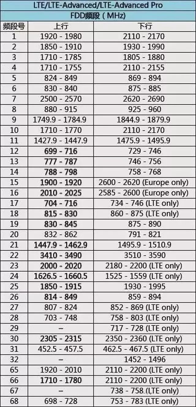 3)根據(jù)最近《工信部同意關于中國聯(lián)通調整部分頻率用于LTE組網(wǎng)的批復》,中國聯(lián)通可以在原2G和WCDMA頻段909-915/954-960,1735-1750/1830-1845,1940-1965/2130-2155上重耕LTE FDD。