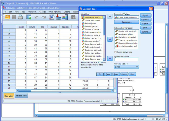 使用“決策”樹對話框,選擇要測量的因變量和自變量以及選擇樹生長方法。