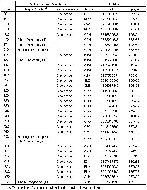 該個例報告顯示了違反多變量規(guī)則的個例,以及違反單變量規(guī)則的個例。這些個例都需要進行報告,作為數(shù)據(jù)輸入以進行糾正。