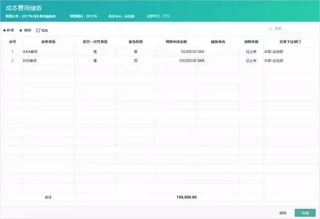 通過將財務制度內化到成本費用儲備微應用,將成本費用預算申請過程,轉化為業(yè)務人員能看懂、會使用的簡單操作。例如優(yōu)化設計編制表格,業(yè)務人員直接填寫數量,自動計算得到事項預算金額,與業(yè)務計劃無縫銜接。