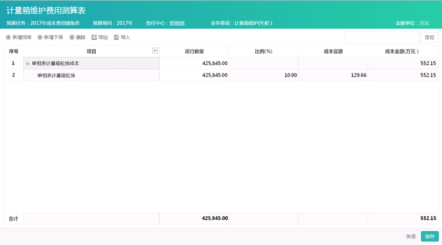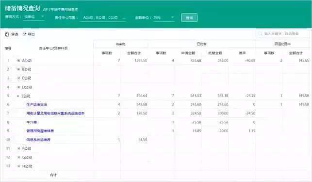 一個機制:通過固化標準,創(chuàng)新工具,形成全口徑成本費用預算編制流程、編制方法、編報依據、編報權限的固化,實現了成本費用標準的在線管理,規(guī)范了成本費用管理的全過程。
