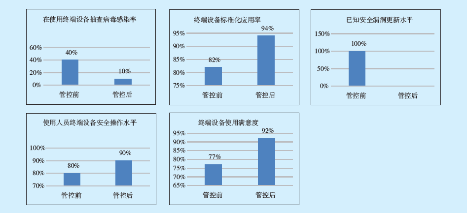 國網(wǎng)浙江電力通過終端技術(shù)風(fēng)險管控,實行終端設(shè)備計劃、采購、儲備、供應(yīng)、發(fā)放的全過程管控,通過運營監(jiān)測和分析,實現(xiàn)移動終端標(biāo)準(zhǔn)化引導(dǎo)和應(yīng)用。優(yōu)選設(shè)備廠家,全面掌握終端設(shè)備質(zhì)量;通過設(shè)備初檢、抽檢和送檢,有效提高終端設(shè)備供應(yīng)質(zhì)量合格率;通過向使用人員發(fā)放安全使用指南,改進(jìn)人員使用操作中的安全風(fēng)險;通過定期調(diào)研和發(fā)放反饋意見表,持續(xù)跟進(jìn)設(shè)備安全可靠性問題;大幅提升終端設(shè)備安全可靠性,實現(xiàn)原定目標(biāo)(見