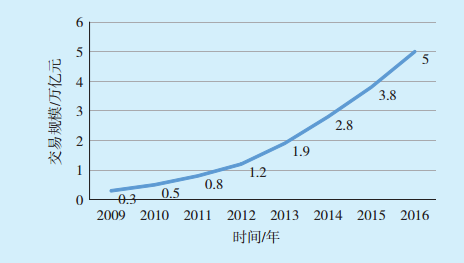 圖1 2009—2016年中國網(wǎng)絡(luò)購物市場交易規(guī)模增長趨勢Fig.1 The trade scale growth trend of China online shopping market among 2009-2016