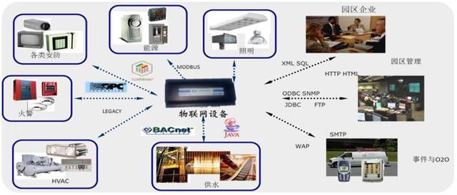 無論設備/系統(tǒng)采用 BACnet®、LonWorks®、MODBUS®、 SNMP、OPC、Obix 等開放協(xié)議,還是其它眾多的私有協(xié)議,系統(tǒng)都可以連接,并且不受制造商或通信協(xié)議的影響。同時支持有線和無線技術,通過統(tǒng)一的解決方案來實現(xiàn)所有公共建筑、工業(yè)建筑、生產設施和設施系統(tǒng)的連接和集成,達到互聯(lián)互通,實現(xiàn)園區(qū)的物聯(lián)網(wǎng)化。