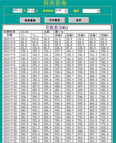 對某個用電單位的不同用電設(shè)備進(jìn)行報表查詢和顯示,并可以打印輸出。