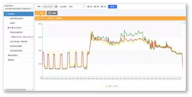 電力數(shù)據(jù)查詢可查詢?nèi)我慌潆娀芈纺程斓碾娏\(yùn)行數(shù)據(jù)(相電壓、線電壓、電流、頻率、功率因數(shù)、有功功率、無(wú)功功率、視在功率),數(shù)據(jù)以圖表和表格的形式顯示,并可將表格數(shù)據(jù)導(dǎo)出至Excel;
