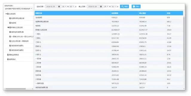 用能集抄可查詢變電所內(nèi)各配電回路在任一時(shí)間區(qū)間內(nèi)的有功電能,并計(jì)算該事件段內(nèi)的用能值,數(shù)據(jù)以表格形式顯示,可導(dǎo)出至Excel中;