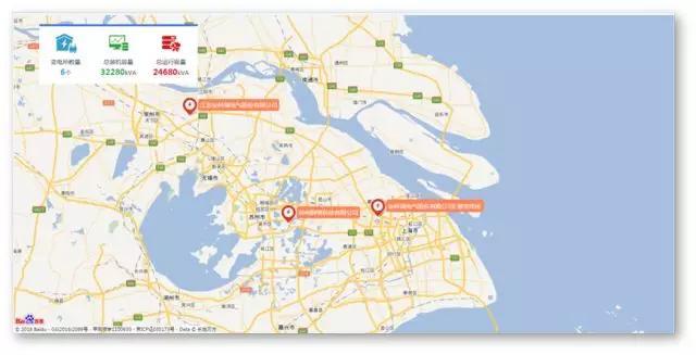 地圖導(dǎo)航結(jié)合電子地圖顯示變電所的分布情況,并匯總變電所數(shù)量、累計(jì)裝機(jī)容量、累計(jì)運(yùn)行容量等信息,點(diǎn)擊圖標(biāo)可跳轉(zhuǎn)至變電所詳細(xì)信息;