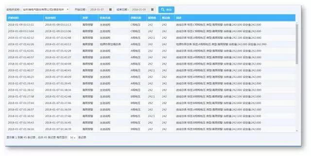 遙測(cè)越限事件可查詢某變電所內(nèi)某段時(shí)間的各類遙測(cè)越限事件(電壓、電流、功率等);