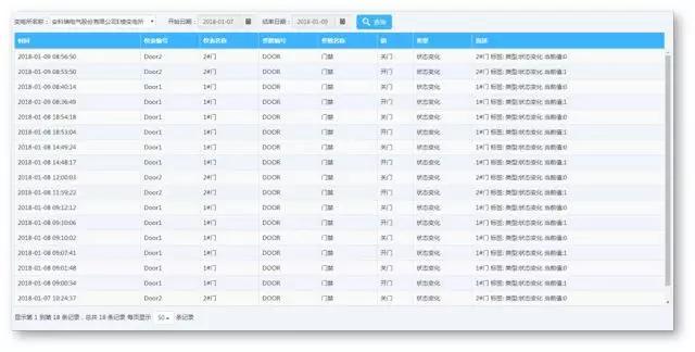 遙信事件可查詢某變電所內(nèi)某段時(shí)間的各類遙信事件(開關(guān)分合閘、水浸、開關(guān)門、煙霧等);