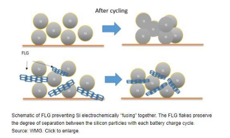 據(jù)外媒報道,華威大學(xué)制造工程系(Warwick Manufacturing Group,WMG)的研究人員研發(fā)了硅-高質(zhì)量薄層石墨烯(Silicon-Few Layer Graphene,Si-FLG)復(fù)合電極(composite electrodes),將其用作為鋰離子電池陽極石墨的高效替代品。