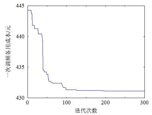 取約束置信度為90%,優(yōu)化迭代次數(shù)為300次時(shí)的微電網(wǎng)一次調(diào)頻備用優(yōu)化配置結(jié)果如圖2所示。