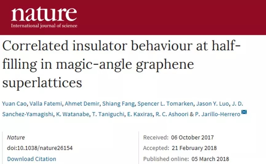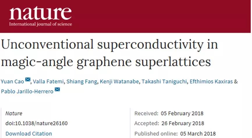 2018年3月5日,國際頂尖期刊Nature連刊兩文,以背靠背長文形式在網(wǎng)站刊登了麻省理工學(xué)院Jarillo-Herrero教授課題組墨烯超導(dǎo)重大發(fā)現(xiàn)。此外,Nature在網(wǎng)站還配以Eugene J. Mele的評述。
