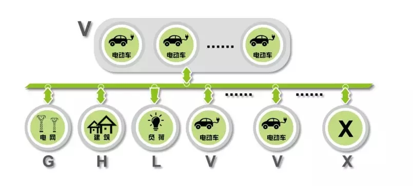 在這樣的系統(tǒng)里面,不得不提到車的作用。電動(dòng)汽車是未來(lái)的發(fā)展趨勢(shì),這里引用國(guó)網(wǎng)提出的電動(dòng)汽車V2G的概念,V2G就是車對(duì)電網(wǎng)放電的意思,引進(jìn)直流母線之后,就不用先V2G,然后再G到負(fù)荷了,直接就可以V2H或者V2L,這樣就形成了一個(gè)新的概念 “V2X”,即通過(guò)直流側(cè)的交互,做到源-網(wǎng)-荷-儲(chǔ)-車的友好互動(dòng),實(shí)現(xiàn)車對(duì)多種能源直接充放電的管理。