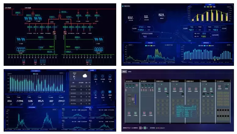 顯示監(jiān)視園區(qū)的電壓、電流、功率等實(shí)時(shí)電參量,直觀顯示系統(tǒng)運(yùn)行工況