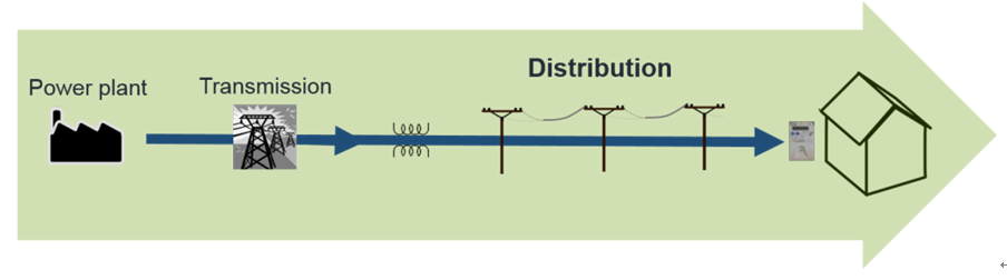 傳統(tǒng)的電網(wǎng)如下圖所示,其特點(diǎn)是是集中、有序、可預(yù)測(cè),電源朝一個(gè)方向流動(dòng)。