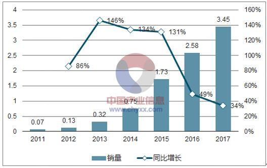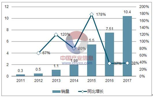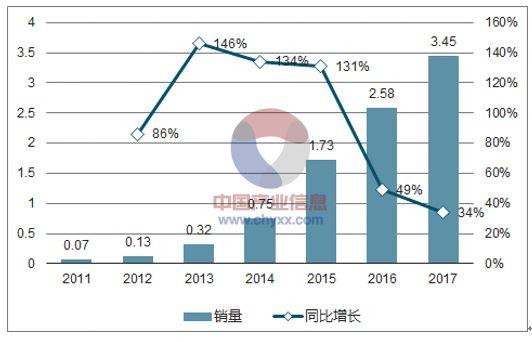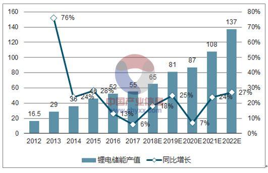 目前由于成本、技術(shù)、政策等原因,儲(chǔ)能電池市場(chǎng)仍處于導(dǎo)入階段。2017年全球儲(chǔ)能鋰電池出貨量為10.4GWh,同比增長(zhǎng)38%。其中中國(guó)儲(chǔ)能鋰電池出貨量為3.45GWh,同比增長(zhǎng)34%,增長(zhǎng)快速。受益于通信領(lǐng)域及能源互聯(lián)網(wǎng)應(yīng)用升級(jí),市場(chǎng)規(guī)模將呈上升態(tài)勢(shì)。預(yù)計(jì)到2022年儲(chǔ)能產(chǎn)值有望達(dá)137億元,較2017年實(shí)現(xiàn)2.5倍增長(zhǎng)。隨著技術(shù)逐漸成熟、成本的逐步下降,儲(chǔ)能市場(chǎng)也將有望成為拉動(dòng)鋰電池消費(fèi)的另一增長(zhǎng)點(diǎn)。