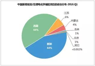 2018年一季度,由于中國新增投運電化學(xué)儲能項目的裝機(jī)規(guī)模較小,因此這里僅對新增規(guī)劃/在建項目進(jìn)行分析。