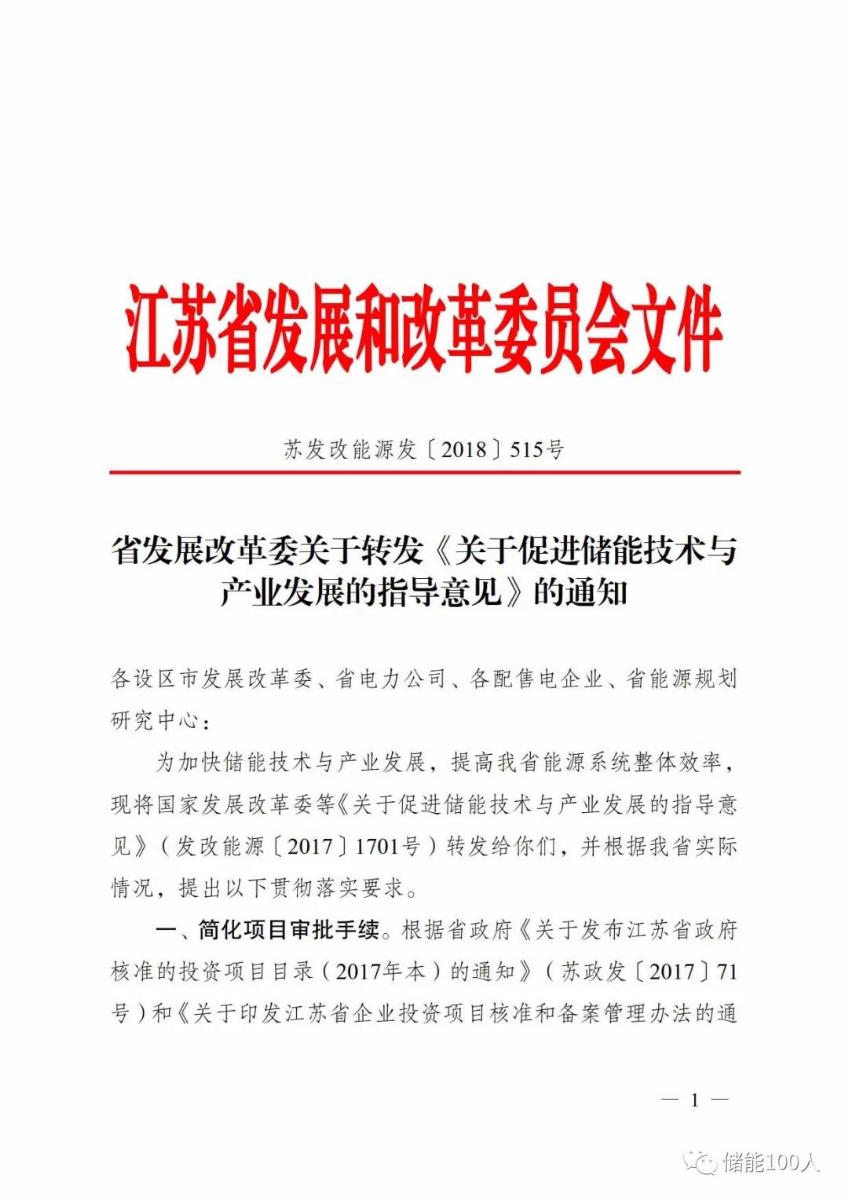 江蘇省發(fā)改委本月初發(fā)布了《關(guān)于轉(zhuǎn)發(fā)<關(guān)于促進(jìn)儲能技術(shù)與產(chǎn)業(yè)發(fā)展的指導(dǎo)意見>的通知》(以下簡稱《通知》)。除要求加強(qiáng)貫徹去年10月五部委發(fā)布的儲能發(fā)展指導(dǎo)意見外,還特地提出“簡化項(xiàng)目審批手續(xù)、加強(qiáng)規(guī)劃統(tǒng)籌發(fā)展和分級分類協(xié)調(diào)管理”等三大具體落實(shí)要求。