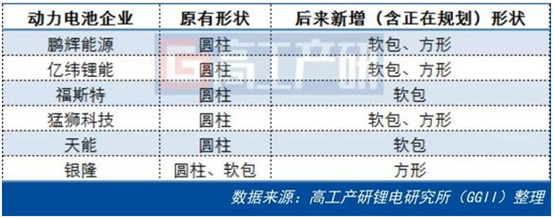 新增的方形及軟包產(chǎn)能居多