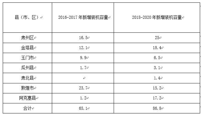 酒泉市光伏發(fā)電規(guī)劃目標(biāo)表