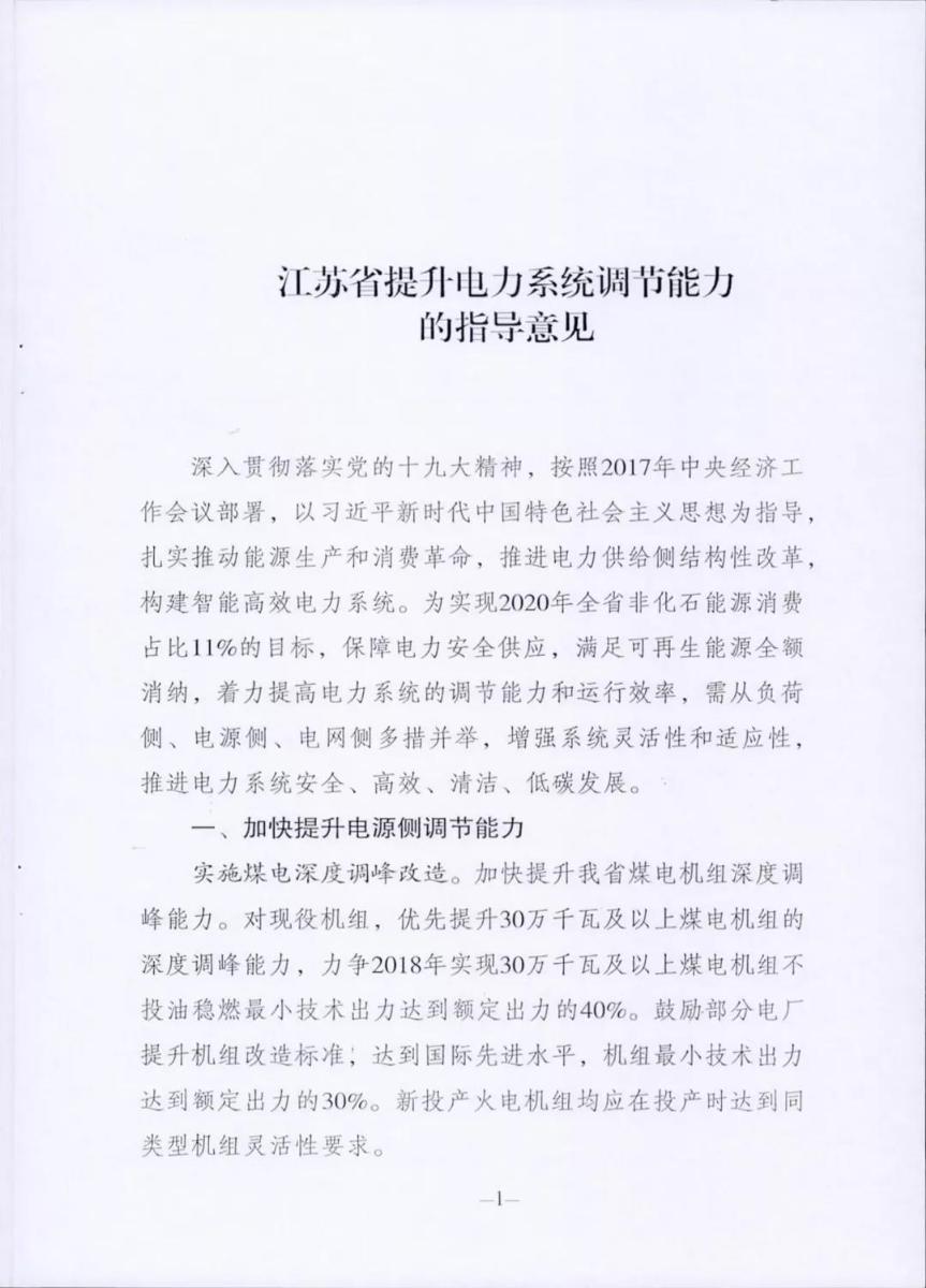 近日,國(guó)家能源局江蘇監(jiān)管辦聯(lián)合江蘇省相關(guān)部門印發(fā)了《江蘇省提升電力系統(tǒng)調(diào)節(jié)能力的指導(dǎo)意見》,旨在實(shí)現(xiàn)2020年全省非化石能源消費(fèi)占比11%的目標(biāo),保障電力安全供應(yīng),滿足可再生能源全額消納,著力提高電力系統(tǒng)調(diào)節(jié)能力和運(yùn)行效率,需從負(fù)荷側(cè)電源側(cè)、電網(wǎng)側(cè)多措并舉,增強(qiáng)系統(tǒng)靈活性與適應(yīng)性,推進(jìn)電力系統(tǒng)安全高效清潔低碳發(fā)展。