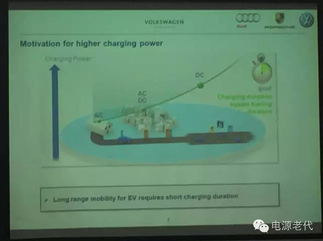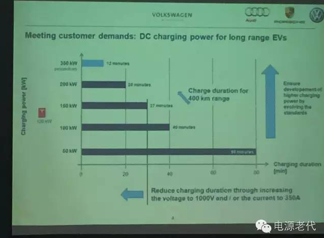 未來的方向是往高電壓、大功率方向走,歐洲車企很早就提出了這個方向,下面是大眾公司的路標(biāo):