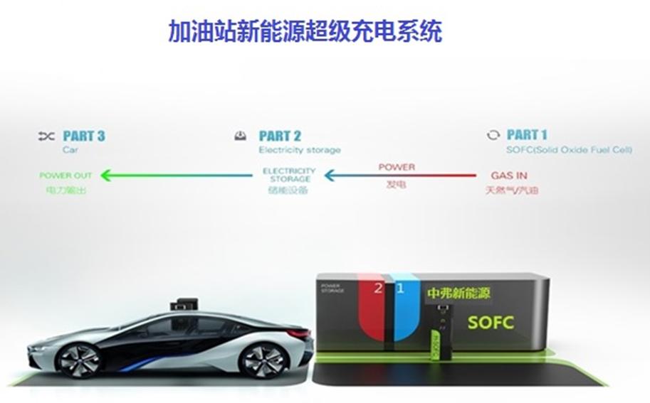 由于固體氧化物燃料電池可用于軍事,發(fā)達(dá)國(guó)家限制向我國(guó)出口。經(jīng)過多年技術(shù)研發(fā),中弗新能源的創(chuàng)始團(tuán)隊(duì)終于突破關(guān)鍵技術(shù),研制出了“新能源汽車超級(jí)充電系統(tǒng)裝置”樣機(jī)。把1升汽柴油或1標(biāo)方天然氣輸入這個(gè)裝置,可輸出5度直流電。它有多種用途,中弗新能源決定將其首先應(yīng)用于加油站、加氣站,通過安裝新能源汽車超級(jí)充電系統(tǒng)裝置,讓加油站網(wǎng)點(diǎn)具有為新能源汽車充電的功能。